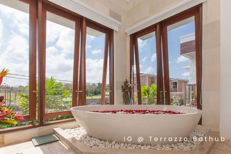 Oval egg shape bathtub. This luxury terrazzo bathtub available in two size.
