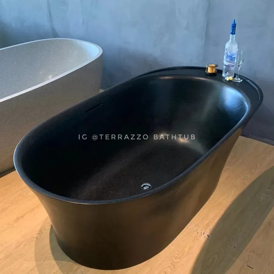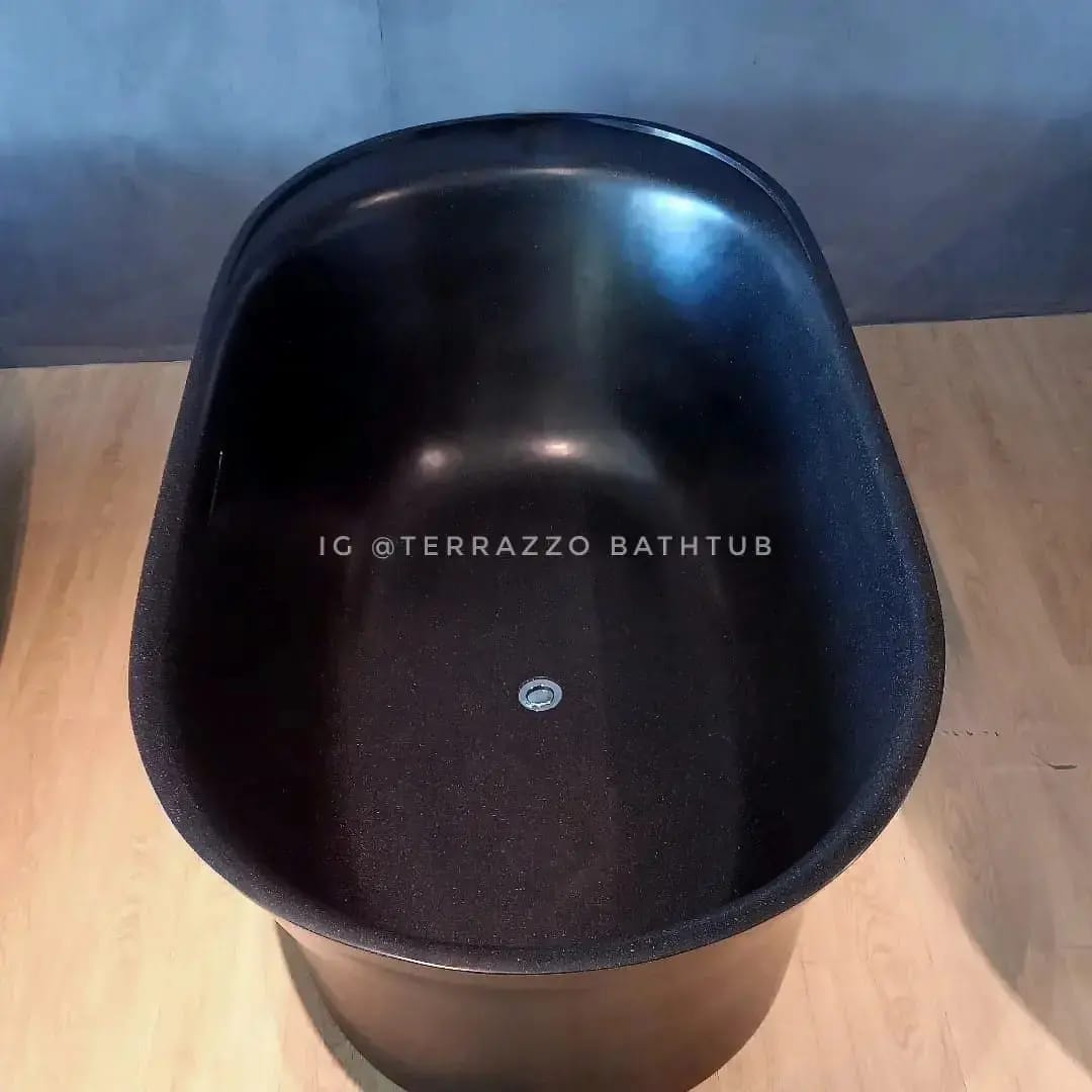 Luxury Freestanding Bathtub, Material from natural recycle chips marble mixed high quality unsaturated polyester resins . Weight approximately 90kg only. This bathtub is very comfortable for long day soaking.